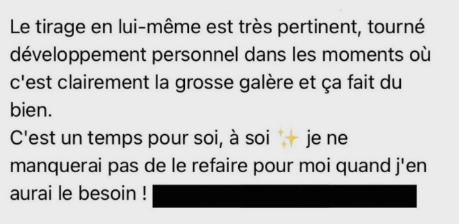 Je te montre le tirage en action avec un exemple perso, pour que tu voies exactement comment l’utiliser et comment l’interpréter.